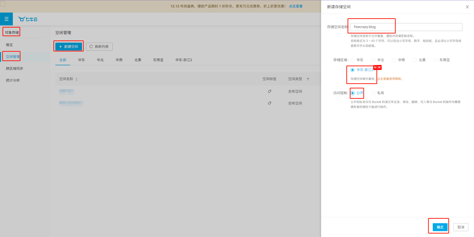 七牛云账号注册啥的,不是外文,应该不是大问题。进入控制面板,点击新建空间,看图: