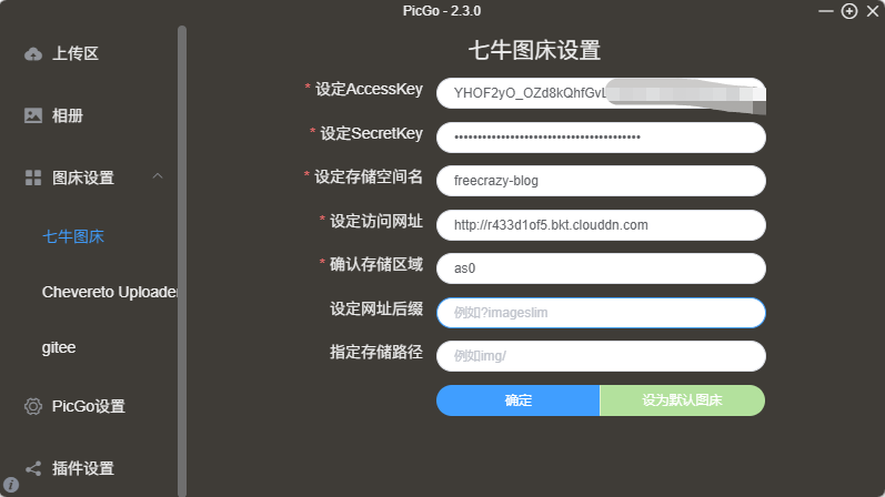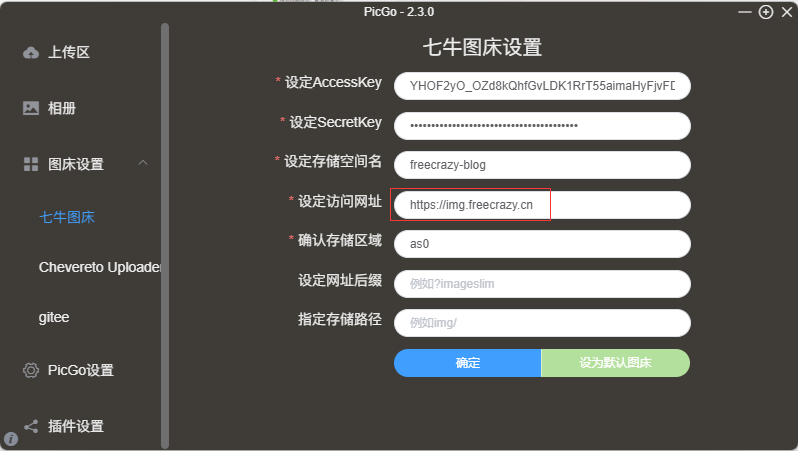 将七牛云设置为默认图床,将七牛云设置为默认图床,将七牛云设置为默认图床,三遍划重点。