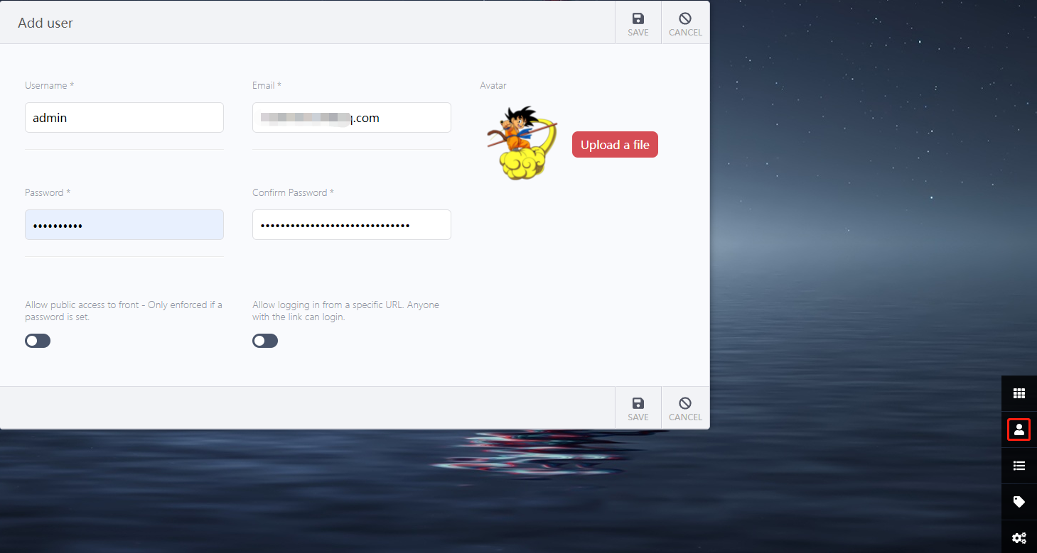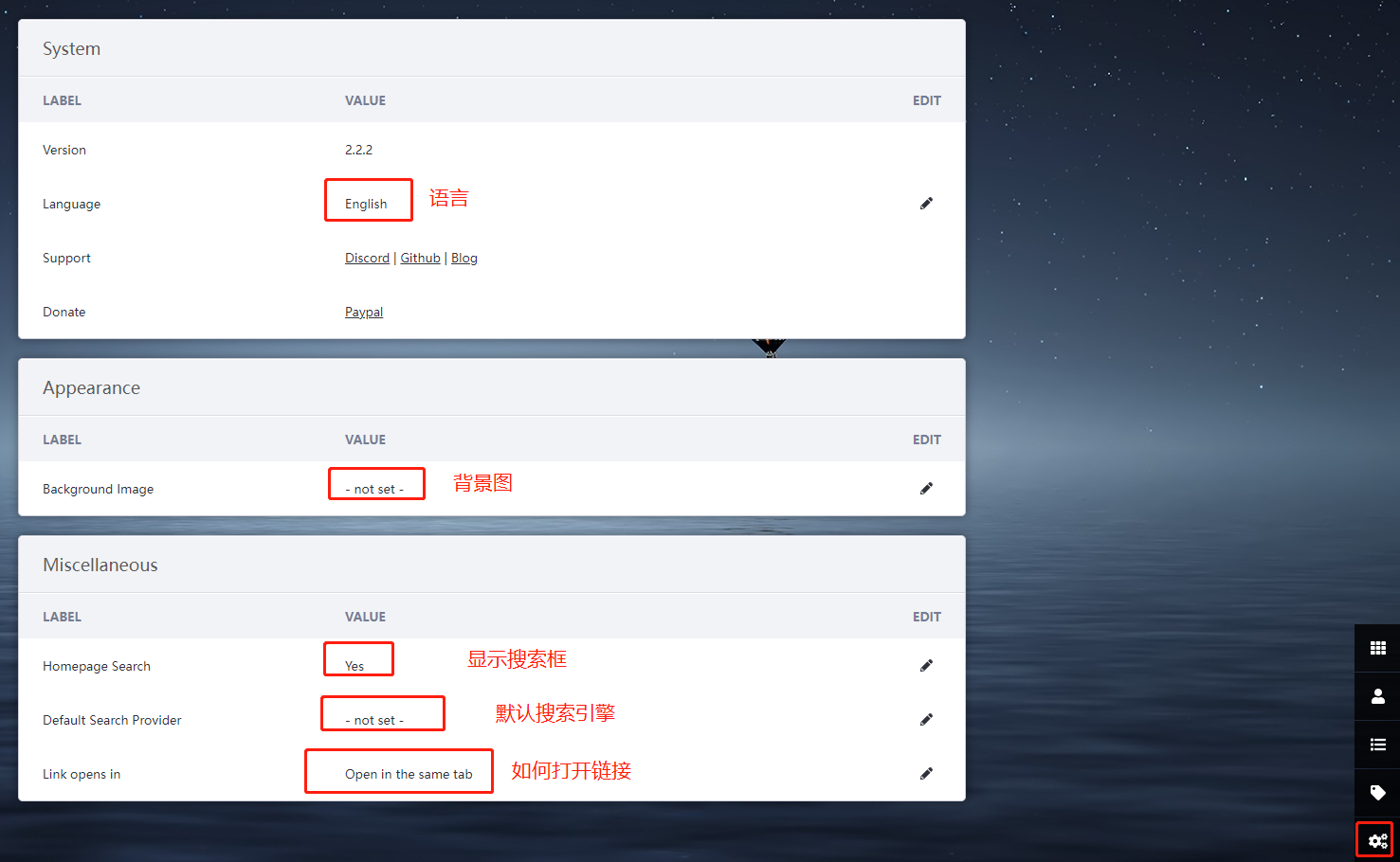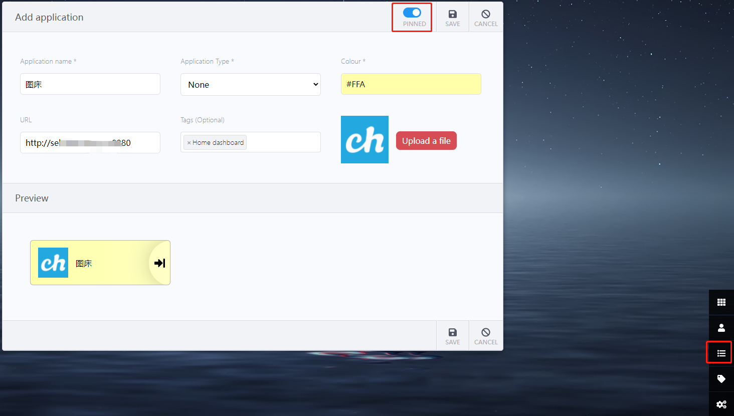 PS:最下面两个开关,一个是不用密码可以进入主页,但是新增或修改图标需要输入密码;一个是会有个链接生成给你,你从链接进入就不需要登录了,类似免登录。没啥大用,按需开启。