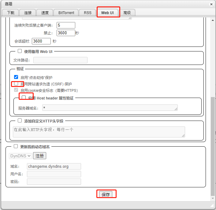 PS:qbittorrent设置密码后进不去, 需要去设置里面设置一下