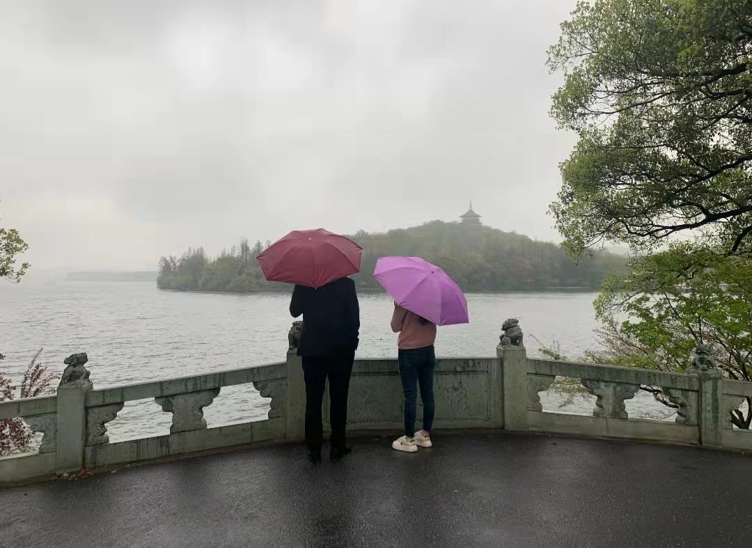 为了烘托氛围,机构让他们相隔半米时才能平撑雨伞,互看对方。
