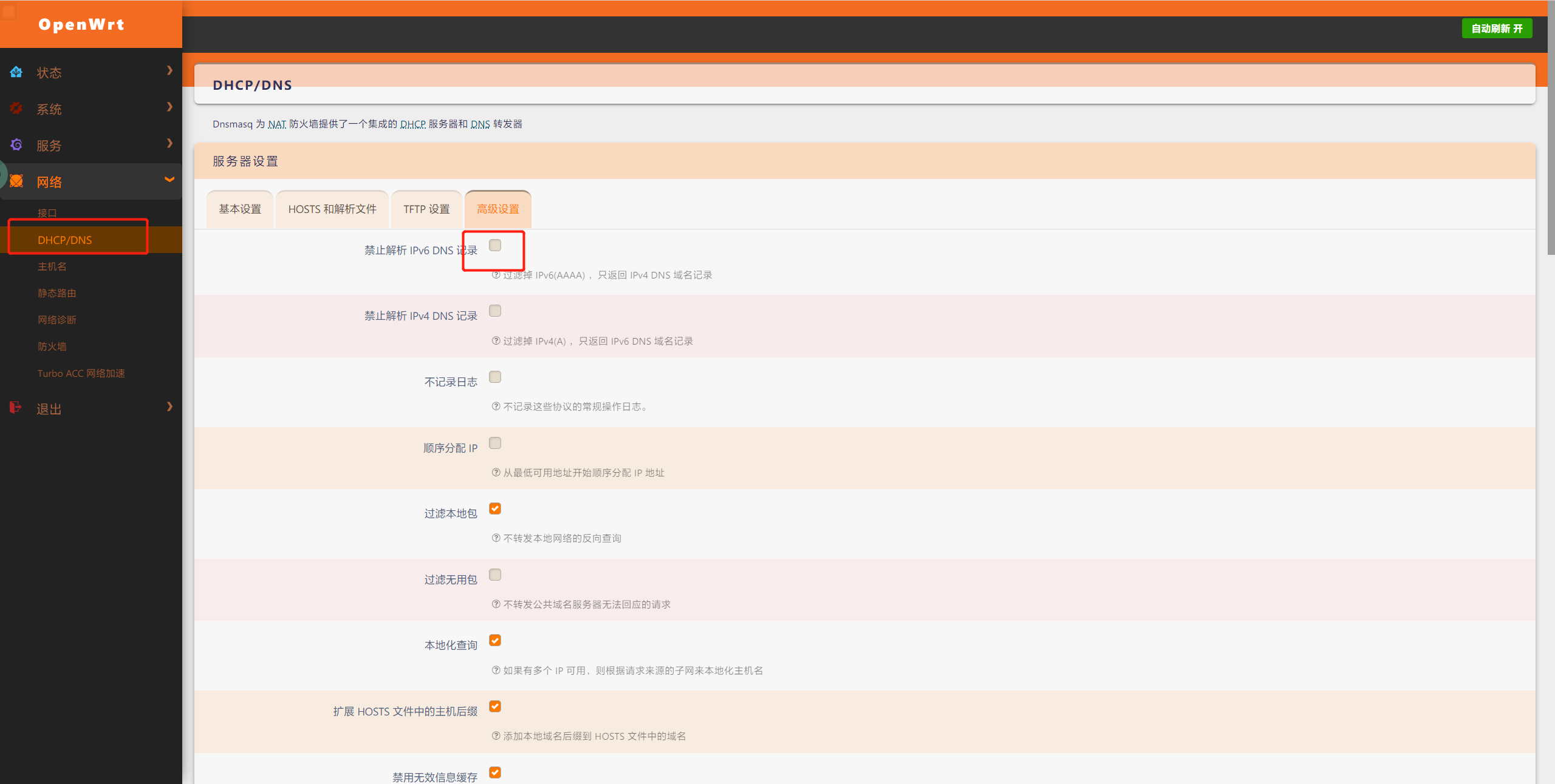 默认dns不解析IPV6,导致自己的设备访问不了,选择开启。