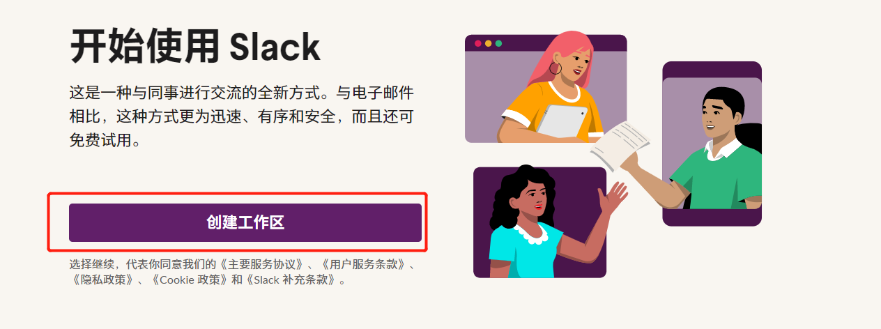 Claude运行在Slack,所以注册一个,地址:https://slack.com/intl/zh-cn/,邮箱注册然后创建工作区,瞎填即可,第二步选择跳过。