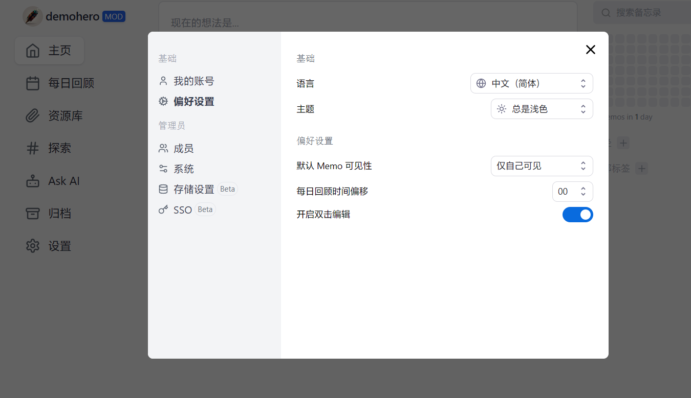 改成中文后,都能看懂,如果不想有垃圾数据,把允许用户注册关闭,自己给道合之人建账号。记录笔记选择在哪里可见,或者不需要公共的就把公共memos也关掉。