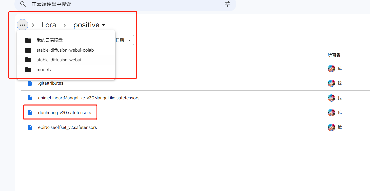 点击之后等待片刻,去谷歌硬盘把文件移动至model位置。