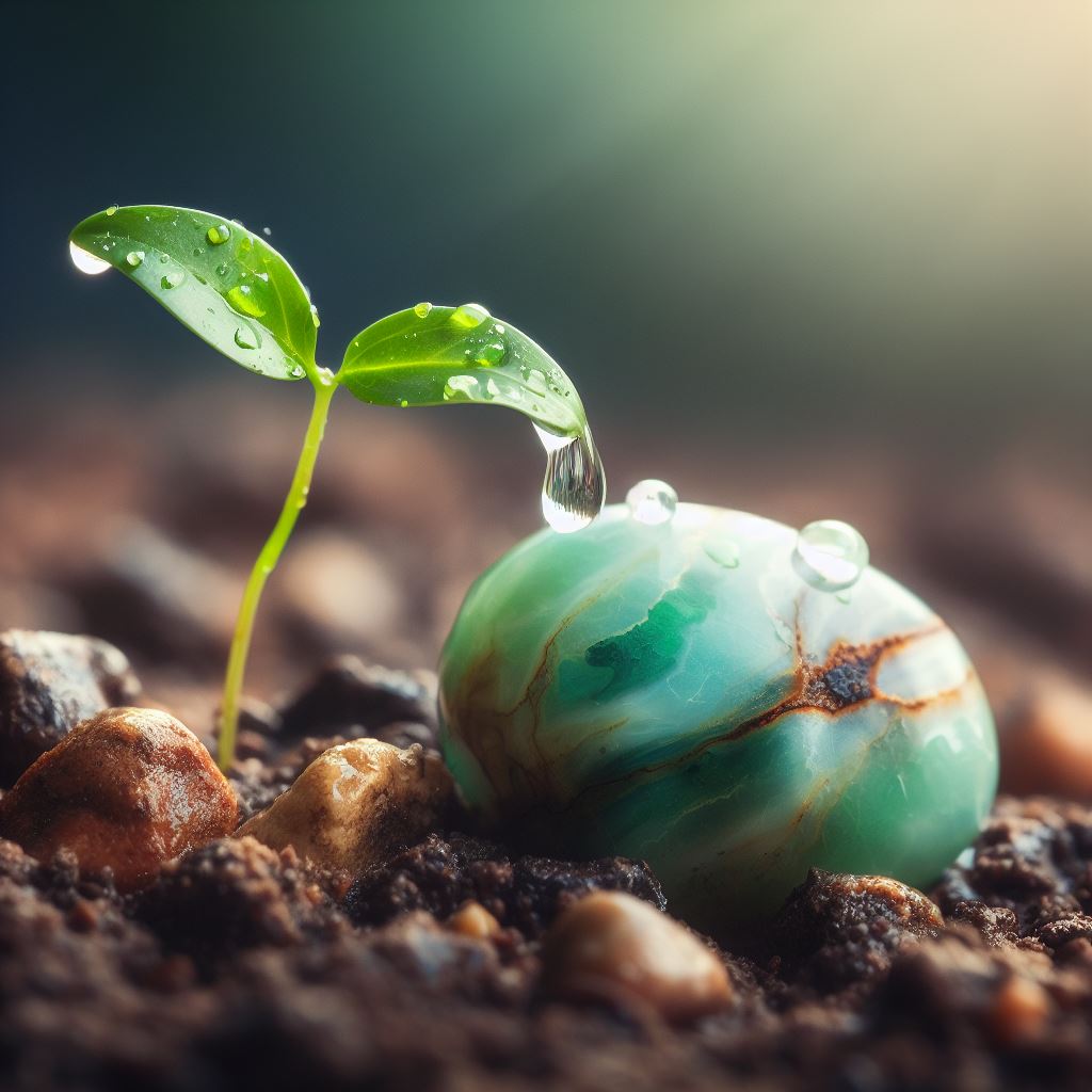 禾苗借助玉石上的污泥养分奋力扎根,玉石因禾苗的庇护洗涤再度散发光芒。